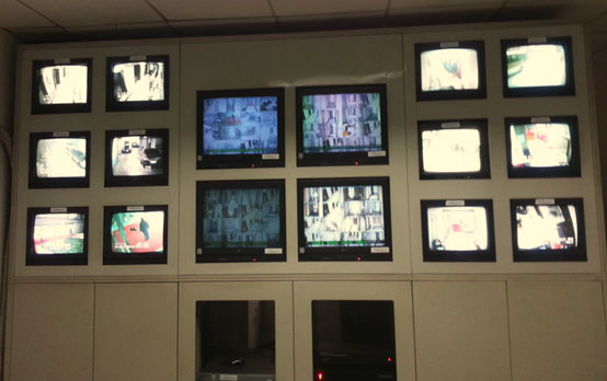 原有CRT電視墻,監視器已嚴重偏色,且屏幕模糊不清
