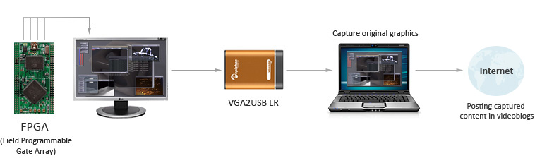 對于那些開發FPGA圖形應用程序的人們來說,圖像采集卡是不可缺少的。 VGA2USB LR獲取數字化的原始圖形,記錄并用于分析視頻內容和質量。高性能信號的捕獲使開發人員能夠記錄仿生副本輸出視頻并進行進一步像素-像素的分析。這些內容以一種高分辨率形式被準確地記錄在單獨的文件中。開發人員希望在其視頻博客中定期發布發展過程中的成果,他們只需要瀏覽保存文件和發布內容的文件夾。這使得對該項目感興趣的人們亦能參與其中。