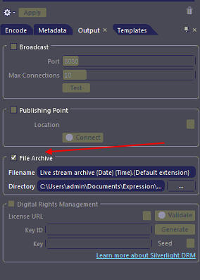 現(xiàn)在選擇Output選項卡并指定輸出的細(xì)節(jié),在我們的示例中視頻是保存到一個文件中,輸入目錄和文件名。