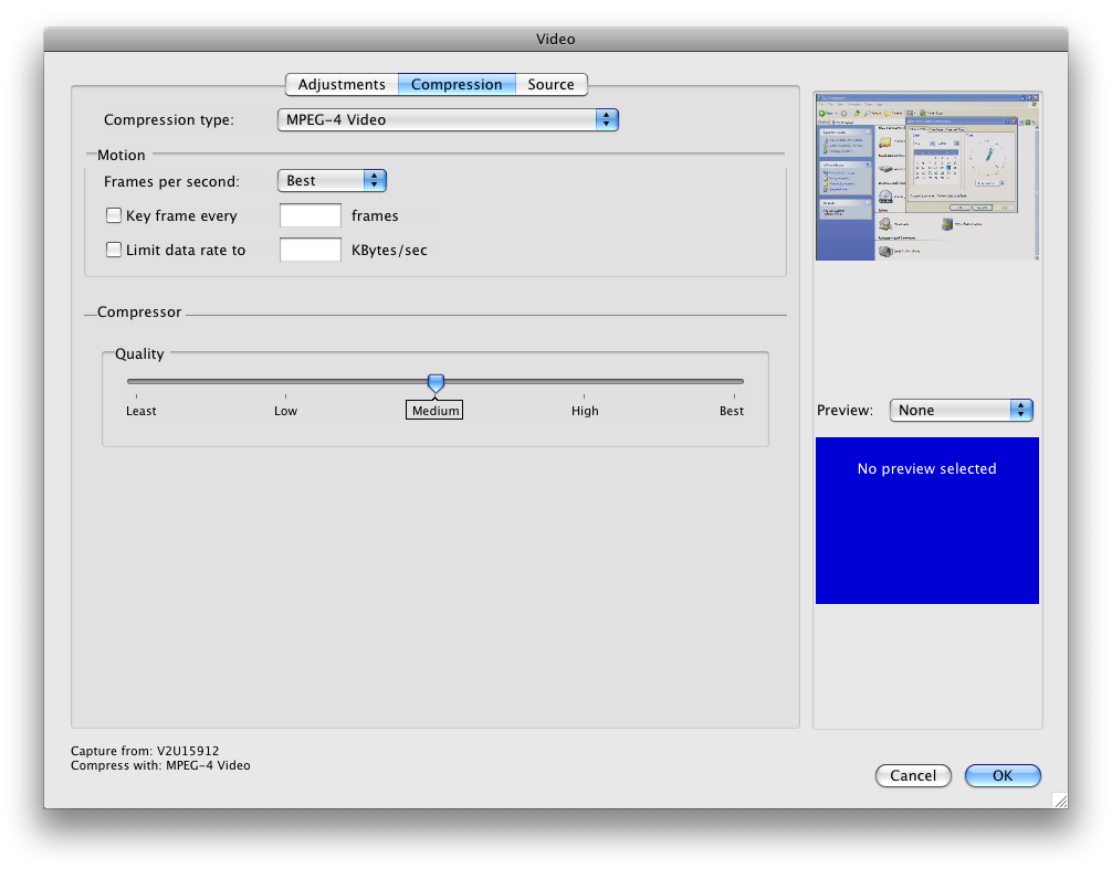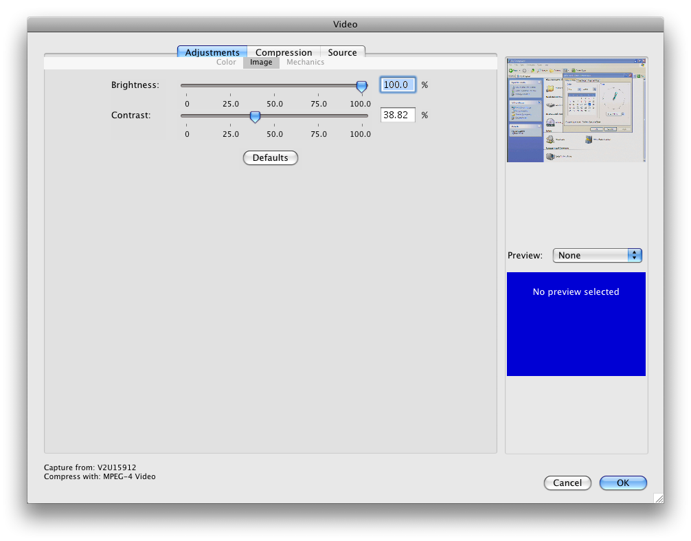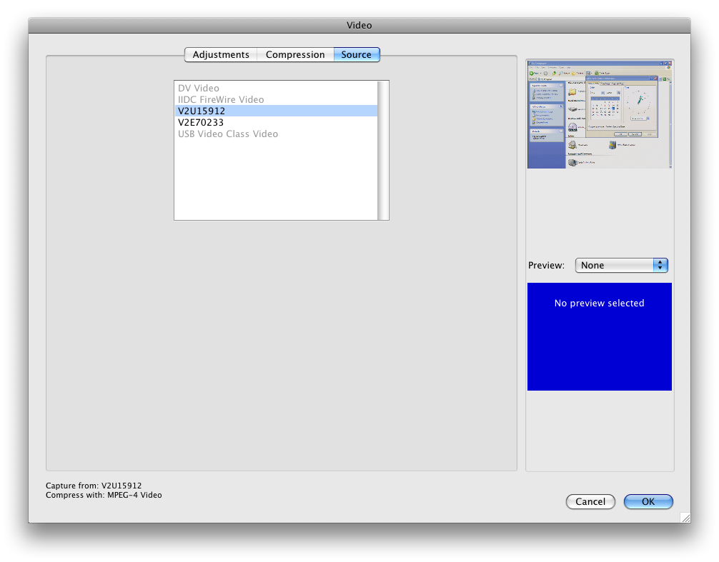 導航到“Source”源選項卡,選擇更改輸入設備(如果安裝了多個視頻設備)。