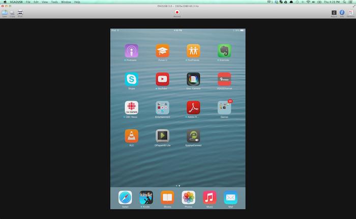顯示iPad作為你的桌面,分享一個(gè)采集工具例如Epiphan Capture Tool或其它第三方應(yīng)用程序如VLC等工具。
