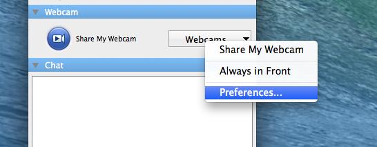 從你GoToMeeting控制面板中攝像頭部分單擊“Webcams” 攝像頭按鈕,并選擇偏好設(shè)置。