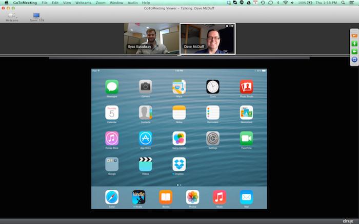 在GOTOMeeting中用任何相機(jī)都一個(gè)狀態(tài)。放心,在接收端,他們看到的iPad屏幕是完美的。