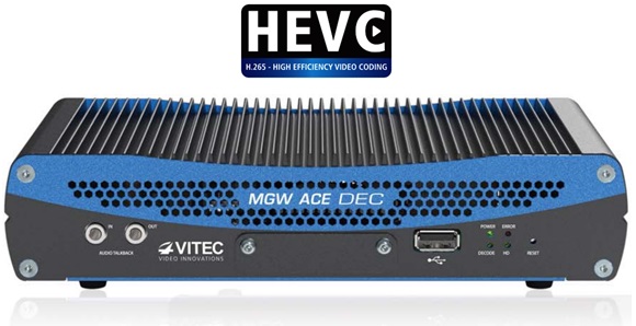 支持解碼方式為HEVC/H.265的高清視頻編碼器(例如MGW Ace HEVC解碼器);