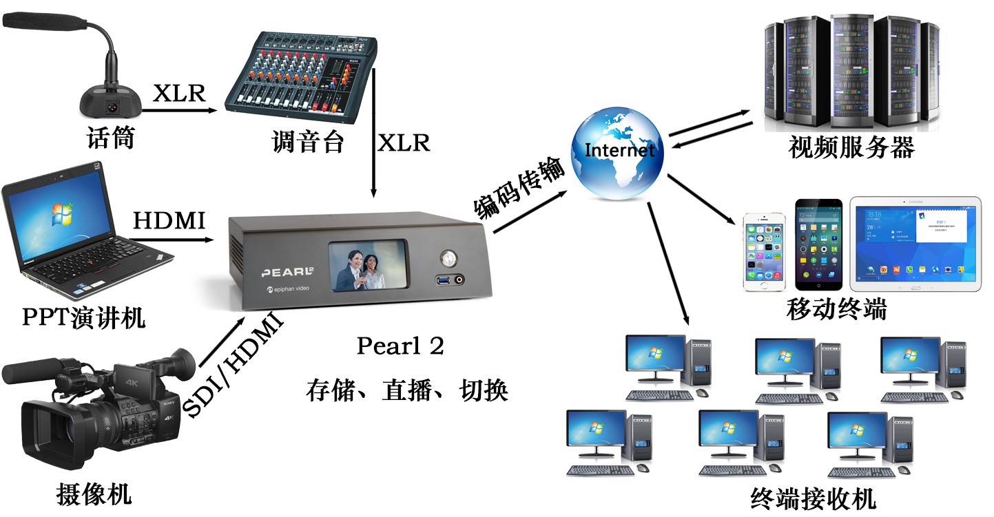 集多接口輸入、畫面自定義布局、壓縮存儲并多協議傳輸的視頻編碼器(例如Pearl2便攜式錄播一體機)