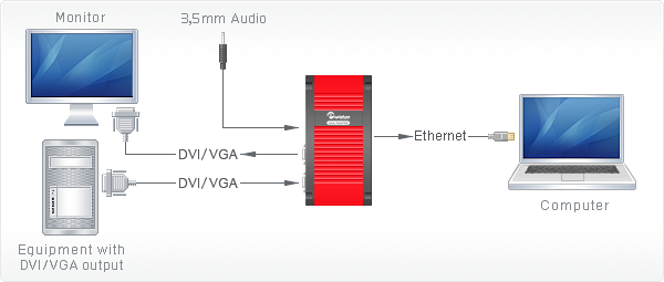 VGA2Ethernet完全與Windows和QuickTime的DirectShow兼容Mac OS X中,這意味著它可以與任何第三方軟件,它允許外部攝像頭作為視頻輸入使用同時使用。另外,VGA2Ethernet軟件,可以免費下載,不僅支持查看和作為一個圖像或視頻VGA信號儲蓄,而且還允許用戶:
