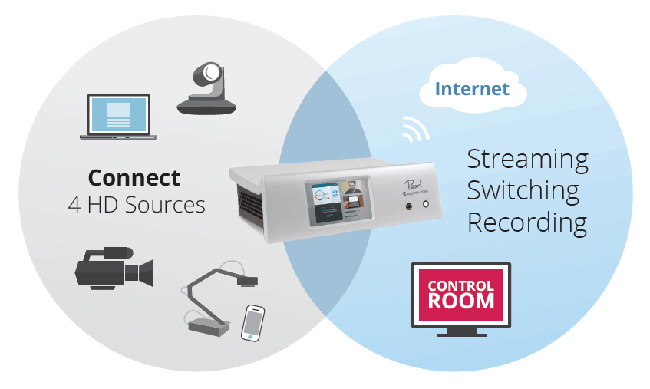 典型的用戶測(cè)試實(shí)驗(yàn)室設(shè)置,包括來自各種信號(hào)源的視頻,例如攝像機(jī),文檔攝像機(jī),移動(dòng)/電腦屏幕等 - 所有這些設(shè)備都是Pearl支持的。Pearl同時(shí)捕獲多達(dá)4種不同的全高清(高分辨率)視頻源(HDMI,DVI,SDI或VGA),并支持音頻捕獲(通過HDMI,SDI和立體聲TRS音頻插孔)。