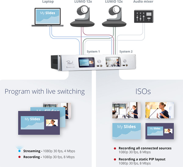 使這個直播流冗余播放效果最好的方法是使用Pearl Rackmount Twin或Pearl-2 Rackmount Twin。也可以使用兩個獨立的Pearl系統,但是為了節省空間和密度,Rackmount Twin型號不能被無視。隨著兩個獨立的Pearl系統彼此相鄰,即使面對人為錯誤,您也可以控制直播和錄像的需求。當您在兩個系統上使用此方案時,即使是一臺掉電也不會毀了你的一天工作!